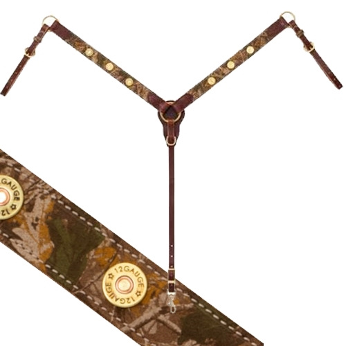 From the exclusive Backwoods collection, these Weaver Backwoods Breastcollars are perfect for any outdoor enthusiast and their horse! The camo-patterned suede overlay is available in green or pink, with shotgun shell conchos in honor of the great outdoors. These western trail breastcollars are made in the USA with sunset harness leather, adjustable tug straps and girth strap, with long lasting brass buckles and snaps. The best part? The Weaver Backwoods collection will match your Real Tree and Mossy Oak gear, perfectly!