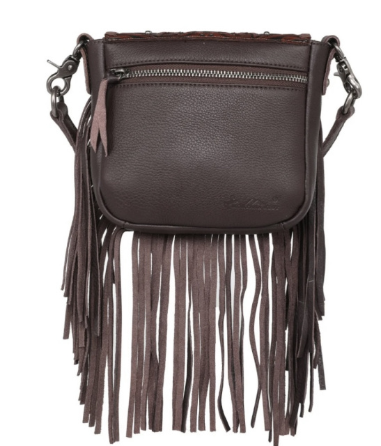 Montana West Genuine Leather Tooled Collection Fringe Crossbody
