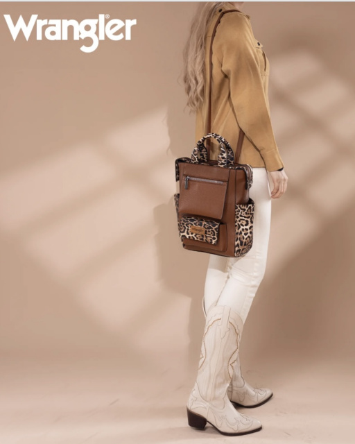 WG161-91123 Wrangler Leopard Print Tote/Shoulder Bag Convertible Backpack - Leopard