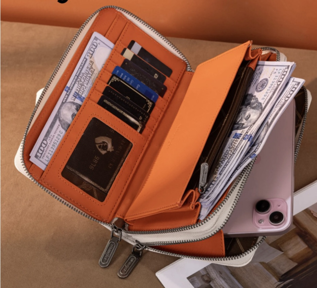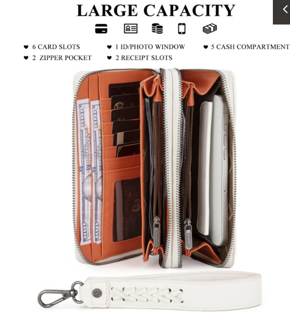 - 4 open compartment, 2 zipper pocket ,1 open pocket, 7 card slots and 2 side bill compartment