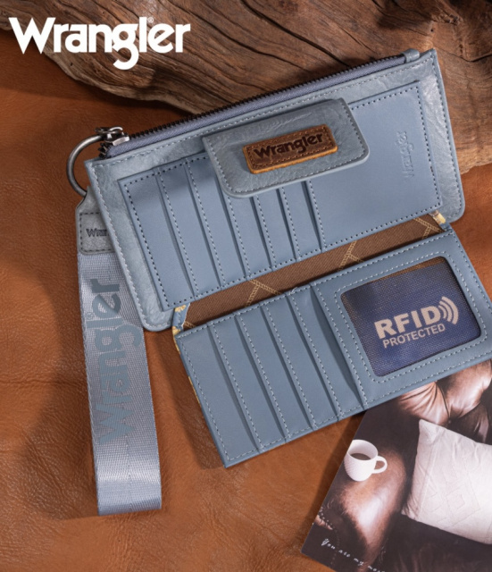 WG316-W013JN Wrangler Sunflower Print Card Wallet/Wristlet - Jean