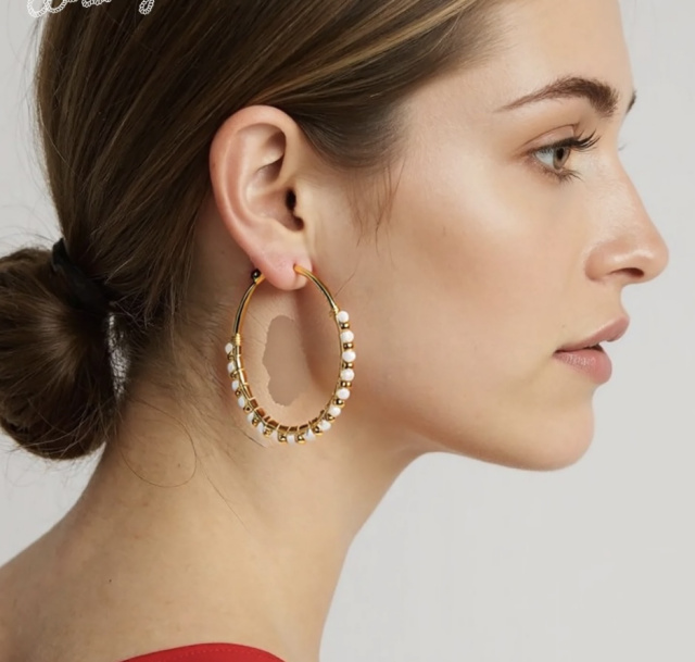 WGE-HP-1102GWH Wrangler 14K Gold Plated Natural Stone Hoop Earrings - White