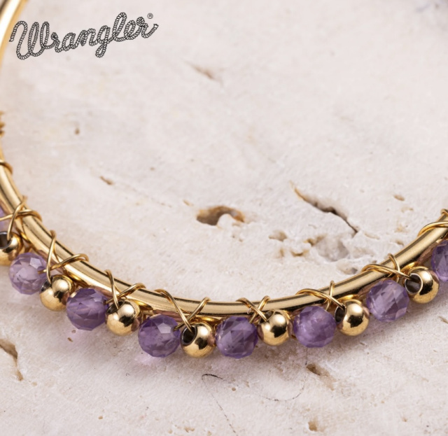 WGE-HP-1102GPP Wrangler 14K Gold Plated Natural Stone Hoop Earrings - Purple