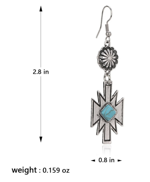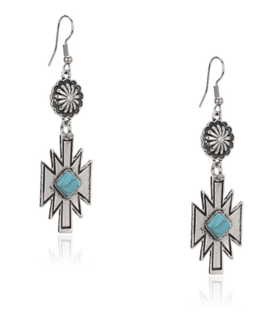 RCE-1117 Rustic Couture's Turquoise Stone Aztec Dangling Earring